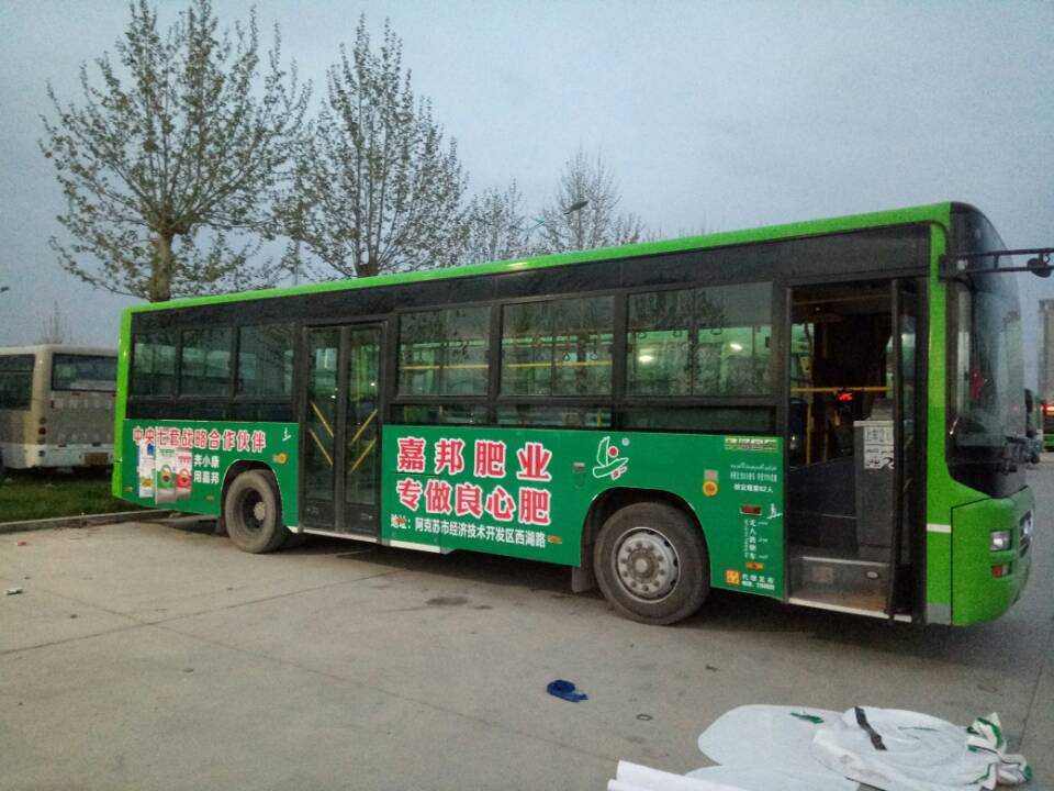 2017年4月15號,阿克蘇嘉邦肥業(yè)有限公司6路公交車(chē)廣告全線(xiàn)投放